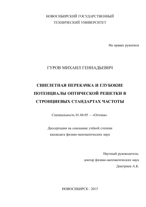 Первое слагаемое в выражении 4.8 - сдвиг Доплера 1-порядка. Хотя этот сдвиг достаточно большой, он может быть устранен сильным ограничением движения атомов внутри периодического потенциала оптической решетки, описываемом выражением 4.9. В этих условиях ограничение свободного перемещения - ограничивается величиной полуволны оптической решетки (для стронциевого стандарта - 813 нм /2 ), т.е. средняя амплитуда осцилляции атома становится меньше длины волны часового лазера [4]. Этот эффект и его влияние на спектр движущегося атома был исследован в работе [19].