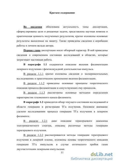 Целью диссертационной работы являлось экспериментальное исследование процессов формирования и распада плазменного канала фемтосекундного филамента, а также исследование процесса генерации терагерцового излучения в лазерной плазме, создаваемой при оптическом пробое газов двухчастотными лазерными импульсами.