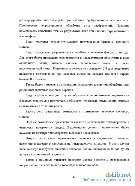 В данной работе будут рассмотрены теневые методы, проведен обзор современной научно-технической литературы, приведены оптические схемы и описания основных классических теневых методов (качественных и количественных) и некоторых рефракционных. Будет показано, что для всех классических теневых методов требуются сложные дорогостоящие оптические установки, требующие точной настройки и юстировки, что существенно снижает возможности их применения. Также будут рассмотрены принципы теневого фонового метода и его стерео модификации, основным отличием которых от классических теневых методов являются простота и дешевизна требуемого оборудования, а также возможность '' проведения крупномасштабных исследований в полевых условиях.