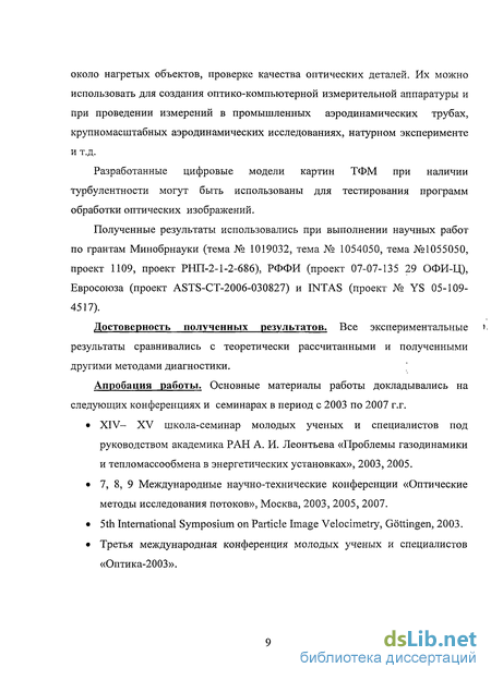 Практическая ценность работы. Предложенные методы и алгоритмы обработки оптических изображений ТФМ могут быть применены при исследовании атмосферных явлений, распределений плотности и температуры