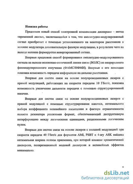 Несмотря на большое количество публикаций, посвященных проблеме дисперсионных и нелинейных искажений сигналов, ряд важных фундаментальных вопросов оказался неизученным или изученным в недостаточной мере. В частности, к ним можно отнести актуальные сегодня способы ослабления или полезного использования частотной модуляции (чирпа), присутствующей в излучении лазеров с прямой модуляцией; методы электронной компенсации дисперсии и нелинейных эффектов и пр. Данная работа посвящена решению этих вопросов.