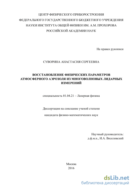 данных, поэтому одним из путей увеличения надежности оценок параметров аэрозоля является уменьшение погрешности вычисления коэффициентов обратного рассеяния и ослабления аэрозоля. Для подтверждения достоверности получаемых результатов необходимо произвести сравнение результатов лидарных измерений с результатами других методов. Кроме того, алгоритмы, разработанные для решения обратной задачи многоволнового лидарного зондирования, могут быть применены для пассивных методик измерения, например солнечных радиометров, входящих в глобальные сети AERONET и GAW-PFR.