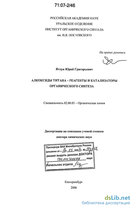 Актуальность проблемы Ллкоксиды титана находят широкое применение в органической химии в качестве реагентов и каїализаіоров, обеспечивающих высокую хемо-, регио- и стериоселективность химических реакций. Их особая ценносіь как реаіеніов заключаеіся в сравниіельно мягких условиях проіекания изогипсических или окислительно-восстановительных реакций, чю приближаем эти соединения к металлокомплексным ферментам. Зачасіую удає і ся сокраїить ряд стадий синтеза. Вместе с тем влияние сіроения алкоксиїрунньї, сокаталитическое действие различных добавок изучены слабо, ірадиционно используется только изопропоксид титана. Указанные воздействия позволякн управлять скоростью и селективностью каталитического процесса, повьішаїь выход конечных продуктов. Исследование возможности алкоксидов іитана аісіуально и в практическом плане, іак как после завершения реакции катализатор может бьпь леї ко удален в виде биологически безвредных неорганических соединений титана. Все то стимулирует изучение алкоксидов титана в качестве реагентов и катализаторов органических реакций, чю в конечном счете должно привести как к усовершенствованию традиционных химических превращений, так и к созданию новых. В целом, но обеспечиї более глубокое понимание возможностей и досюинсів металлокомилексноіо катализа.