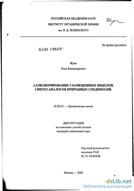 Жунь Илья Владимирович. Аллилборирование 3-замещенных индолов, синтез аналогов природных соединений : диссертация ... кандидата химических наук : 02.00.03.- Москва, 2002.- 152 с.: ил. РГБ ОД, 61 02-2/549-5