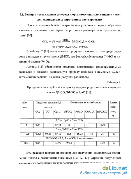 1.2. Реакции тетрахлорида углерода и органических галогенидов с никелем в диполярных апротонных растворителях 11