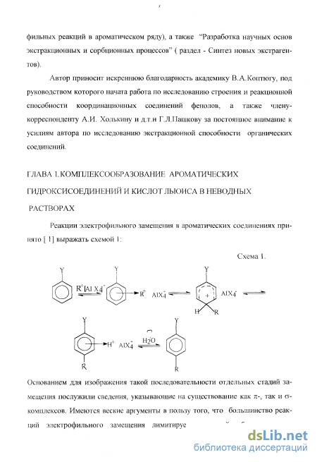 ГЛАВА 1. Комплексообразование фенолов и кислот льюиса в небодных растворах