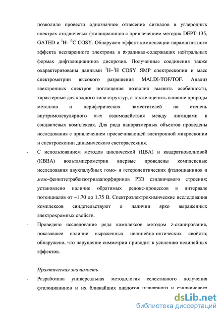 Таким образом, разработка высокоэффективных универсальных методов синтеза и всесторонние физико-химические исследования различных по строению сэндвичевых комплексов фталоцианинов и их аналогов имеют высокую актуальность как с фундаментальной точки зрения, так и для создания основ высокотехнологичных материалов.