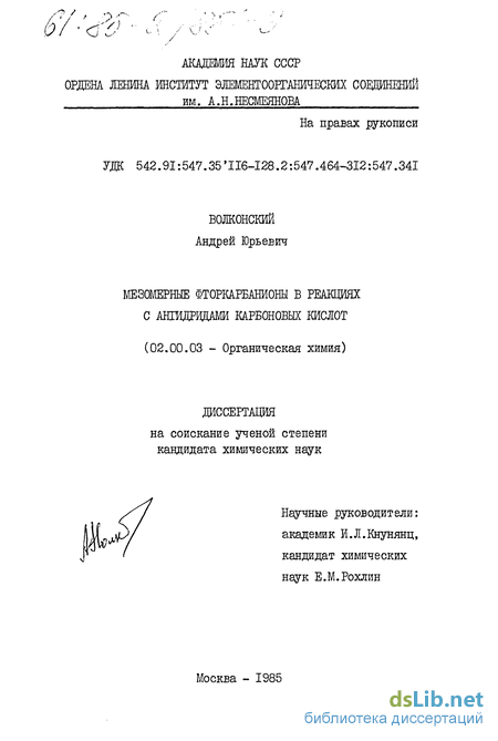Поскольку вопрос об ацилировании мезомерных фторкарбанионов имеет самое непосредственное отношение к материалу диссертации, в первой главе помещен обзор литературы по реакциям мезомерных фторкарбанионов с ацилирущими агентами.