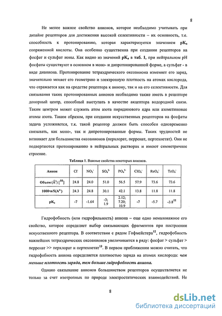 3.1 Искусственные рецепторы на тетраэдрические оксоанионы (дизайн, свойства, селективность)..7