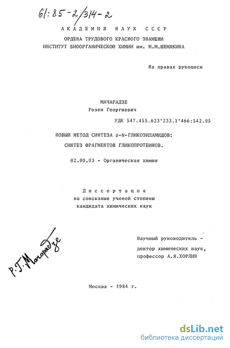 Работа выполнена в лаборатории химии углеводов и гликопротеинов ИБХ им. М.М.Шемякина АН СССР - зав. лабораторией профессор А.Я.Хорлин.