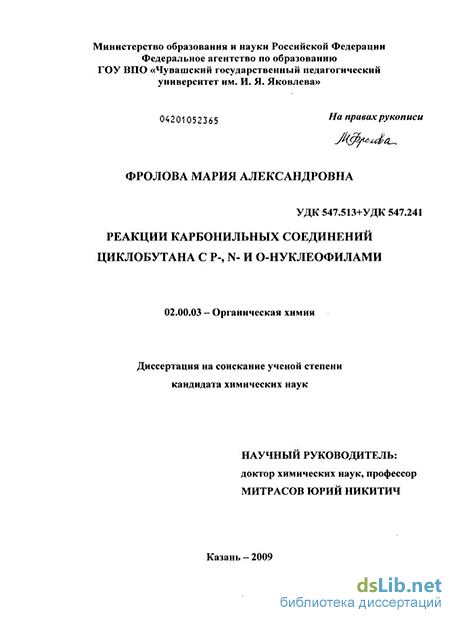 Научная новизна и практическая значимость. Впервые проведены систематические исследования реакций эфиров кислот фосфора (III), а также фосфорилированных N- и О-нуклеофилов с 3-фенил-2,2-дихлорциклобутаноном, хлорангидридами циклобутанкарбоновой и 1,3-циклобутандикарбоновой кислот.