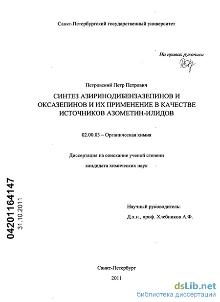 Синтез 1-арил-1,11Ь-дигидроазирино[1,2-й?]дибенз[А,у][1,4]оксазепи-нов и 1-арил-7,11Ь-дигидро-1Я-азирино[1,2-а]дибенз[с,/]азепинов и их использование в качестве источников азометин-илидов в реакциях 1,3-диполярного циклоприсоединения.