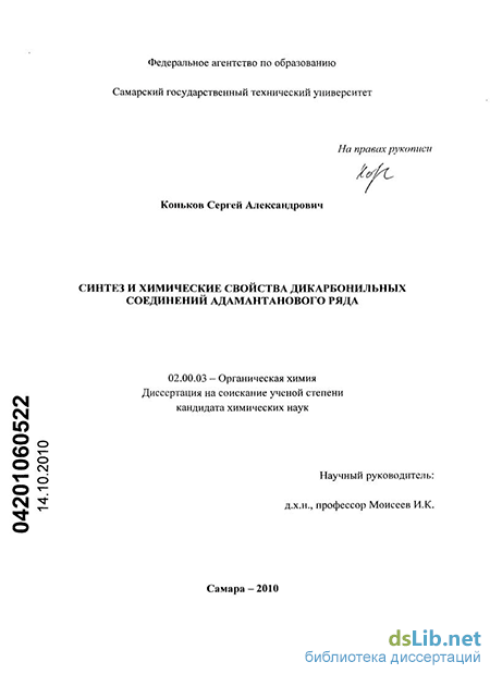 Цель работы – синтез и изучение химических свойств дикарбонильных соединений адамантанового ряда.