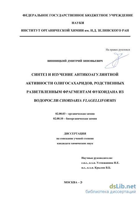 Целью работы является синтез и изучение антикоагулянтной активности олигосахаридов, родственных разветвлённым фрагментам фукоидана из водоросли Chordaria flagelliformis.