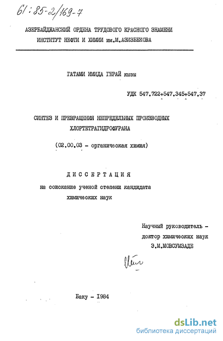 - показано, что некоторые из синтезированных непредельных производных хлортетрагидрофурана проявляют ингибиторный эффект при щелочной коррозии алюминиевого сплава ДІ6Т, коррозии металлических сооружений в морской воде, биокоррозии газо- и нефтепроводов .