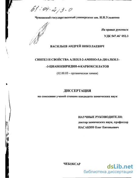 - Взаимодействие алкил-2-амино-5,6-диалкил-3-циано-пиридин-4-карбоксилатов и алкил-5,6-диалкил-2-оксо-1,2-дигидро-3-цианопиридин-4-карбоксилатов с аминами