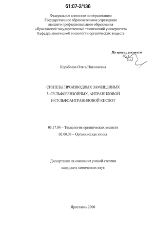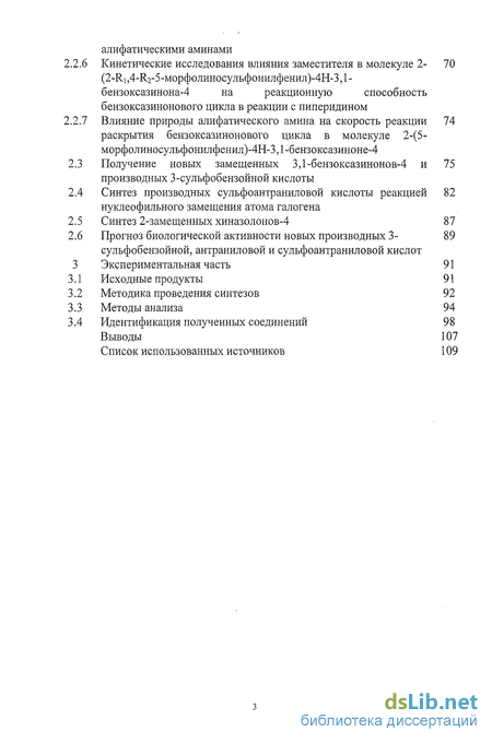 Цель работы заключается в установлении связи структура-реакционная способность производных сульфоновых и карбоновых кислот; разработке эффективного метода синтеза производных 3-сульфобензойных кислот, содержащих в своем составе фрагменты антраниловой кис поты; синтезе новых серосодержащих соединений с последующим изучением их строения и химических свойств.