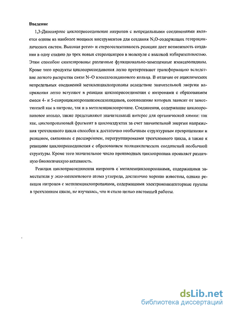Синтез 4-спироциклопропанизоксазолидинов на основе реакции ациклических альдонитронов (С-арил-, С-амидо-) с метиленциклопропанами, содержащими сложноэфирные группы в трехчленном цикле, и 5-изоксазолидинов, при взаимодействии ациклических кетонитронов (С,С-диарил, С,С-бис(метоксикарбонил)-) и циклических нитронов.