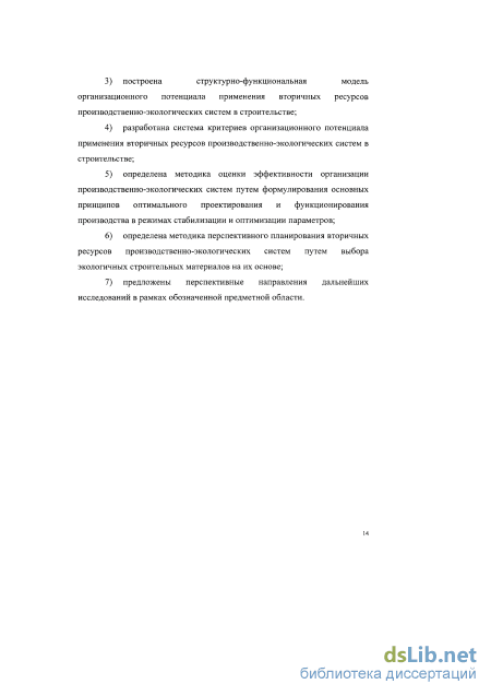 Предмет исследования - организационный потенциал, процессы и результаты применения вторичных ресурсов производственно-экологических систем в строительстве.