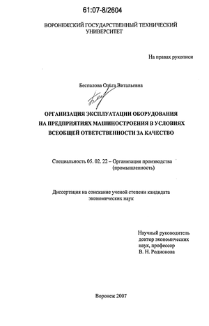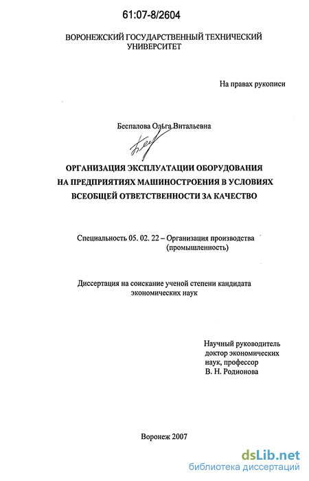 1. Теоретические основы организации эксплуатации оборудования на предприятиях машиностроения в условиях всеобщей ответствен ностиза качество