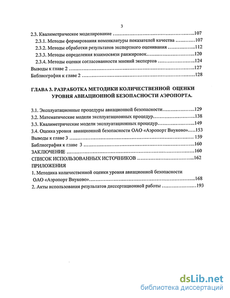 3.4. Оценка уровня авиационной безопасности ОАО «Аэропорт Внуково» 153