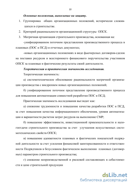 Решение названной проблемы во многом зависит от рациональности организации строительного производства, как определенной организационной формы, содержанием которой выступают производственный и управленческий процессы