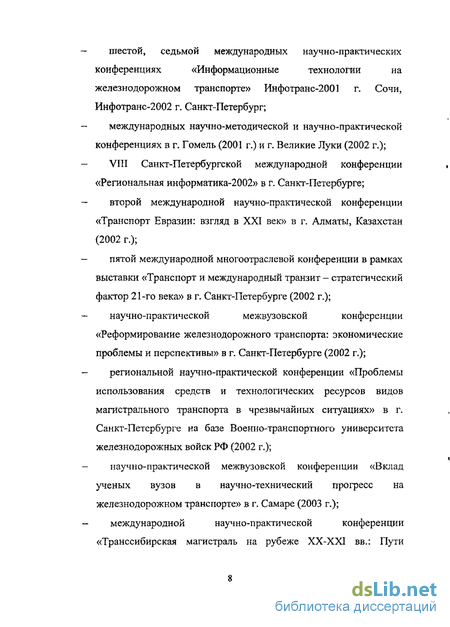 научно-практической межвузовской конференции «Реформирование железнодорожного транспорта: экономические проблемы и перспективы» в г. Санкт-Петербурге (2002 г.);