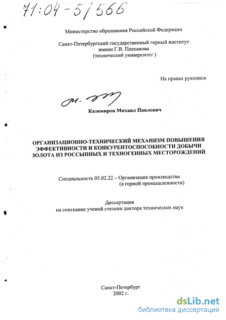 России, качественных показателей материала; • изучение условий разработки месторождений золота, передового опыта