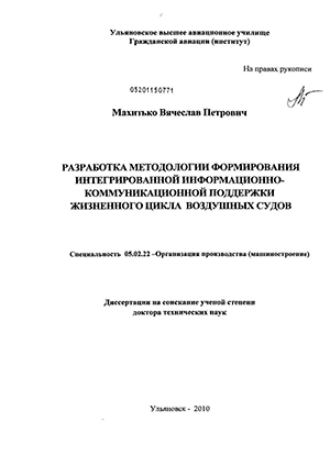 сформирован аппарат организации и развития информационно-коммуникационных средств для повышения эффективности управления процессами проектирования производства и эксплуатации авиационных изделий.