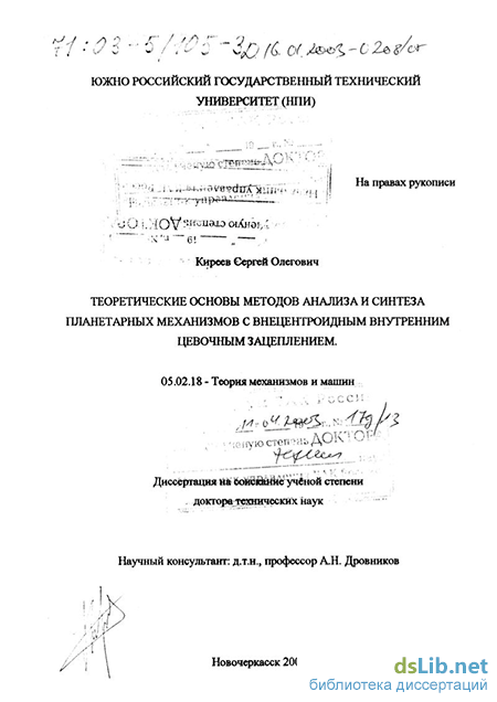 Глава 8 Разработка методов расчета планетарных цевочных передач 235