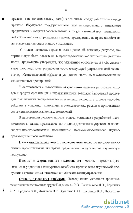 Предмет диссертационного исследования - методы и средства организации и управления конкурентоспособного производства наукоемкой продукции с применением информационной технологии управления.