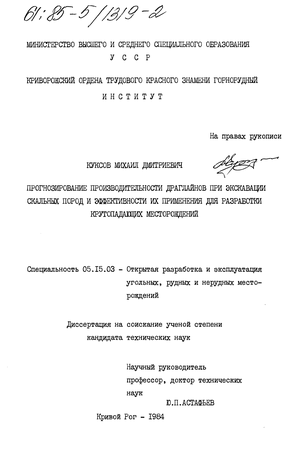 - Обоснование и разработка методики определения рациональных параметров забоя драглайн
