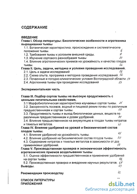 Глава V. Производственная проверка и экономическая эффективность агротехнических приемов возделывания тыквы 62