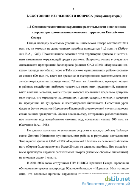 1.1 Основные техногенные нарушения растительности и почвенного покрова при промышленном освоении территории Енисейского Севера 7