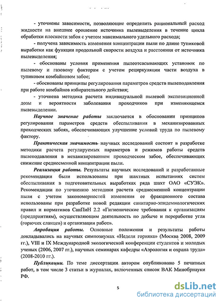 Апробация работы. Основные положения и результаты работы докладывались на научных симпозиумах «Неделя горняка» (Москва 2008, 2009 гг.), VIII и IX Международной экологической конференции студентов и молодых ученых (2006, 2007 гг.), научных семинарах кафедры «Аэрология и охрана труда» (2008-2010 гг.).