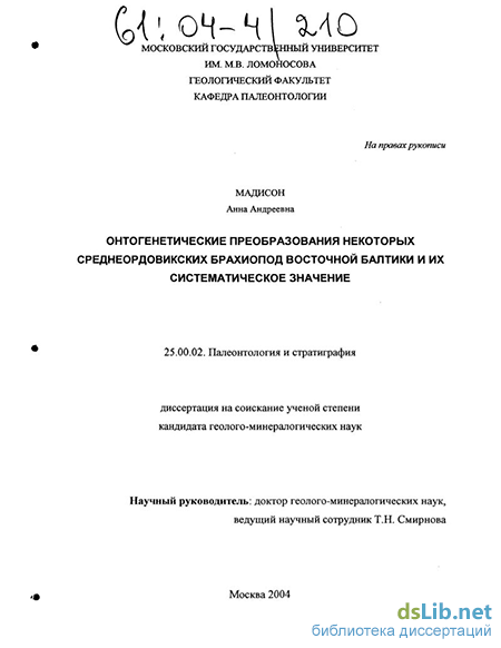 Диссертация выполнена на кафедре палеонтологии геологического факультета Московского государственного университета им. М.В. Ломоносова под руководством д. г.-м.н., ведущего научного сотрудника Т.Н. Смирновой, которой автор благодарен за научное руководство и всестороннюю помощь. Неоднократную помощь при написании работы оказывал проф. Мадис Рубель (Тартуский университет), автор выражает ему искреннюю благодарность. Помощь с полевыми поездками неоднократно оказывали д.б.н. СВ. Рожнов, к.б.н. В.Б. Кушлина (ПИН РАН) и зав. каф. исторической геологии, проф. А.В. Дронов (геол. ф-т СПбГУ), по геологическим описаниям и привязкам которого была датирована бблыпая часть материала. К .г.-м.н. Л. Хинтс (Таллинский геологический ин-т) любезно предоставила возможность ознакомиться с коллекциями по ликофориидам, хранящимся в этом учреждении. При подборе литературы помощь оказывали сэр О. Уильяме (Alwyn Williams, университет Глазго), проф. Д. Харпер (David Harper, Копенгагенский университет) и А.В. Зайцев (МГУ). Проф. А.С. Алексеев критическими замечаниями, сделанными при обсуждении полученных результатов, позволил выправить многие недостатки в оформлении. К. г.-м.н. С. В. Молошников выполнил рисунки реконструкций к работе. Отдельные замечания были сделаны д. г.-м.н. Т.Н. Алихо-вой. Всем перечисленным лицам, всем сотрудникам кафедры палеонтологии геологического факультета МГУ автор выражает глубокую благодарность. Отдельную благодарность хотелось бы выразить д.б.н., проф. В.В. Малахову (МГУ) за предоставленную возможность посещать курс лекций по сравнительной морфологии беспозвоночных и за консультации по ранним стадиям развития современных беспозвоночных.