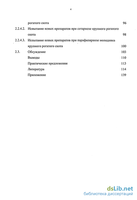 2.2.4. Изыскание новых средств терапии и профилактики филяриатозов крупного рогатого скота 96