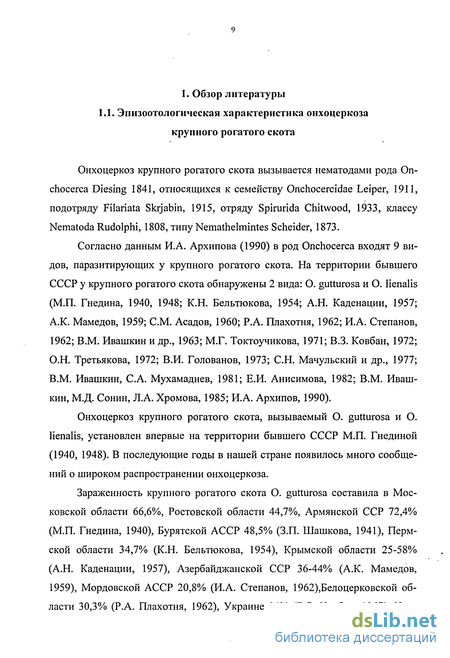 1.1. Эпизоотологическая характеристика онхоцеркоза крупного рогатого скота 9