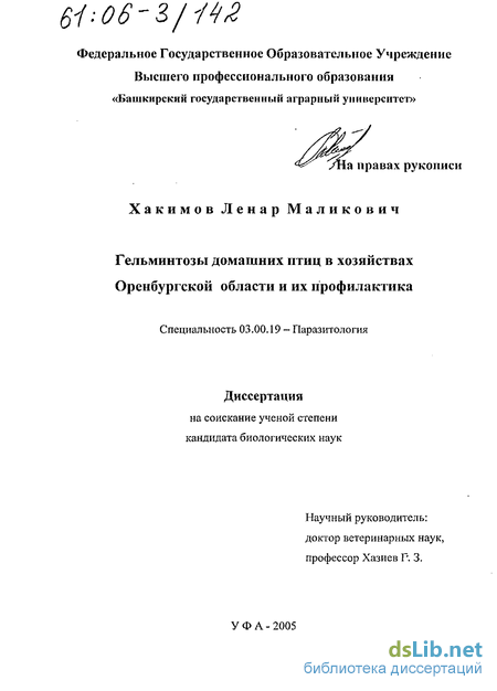 2.2.8 Система лечебно - профилактических мероприятий при гельминтозах домашних птиц в Оренбургской области 96-101