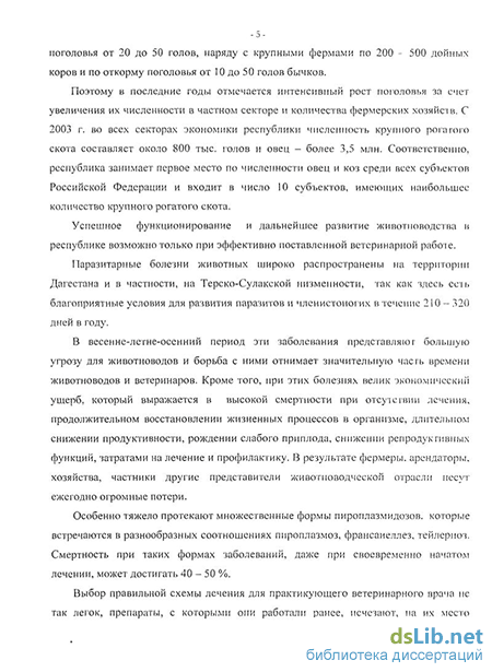 Паразитарные болезни животных широко распространены на территории Дагестана и, в частности, на Терско-Сулакской низменности, так как здесь есть благоприятные условия для развития паразитов и членистоногих в течение 210 – 320 дней в году.