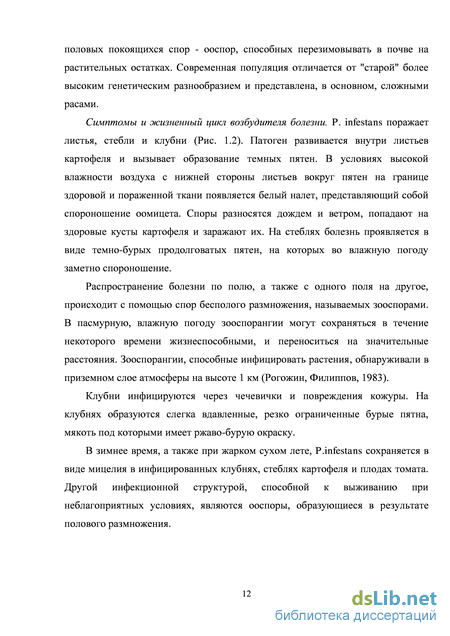 Согласно европейскому опыту, источником заражения картофеля и томата фитофторозом могут служить и дикие пасленовые, хотя их эпидемиологическая роль до сих пор не ясна. Нам удалось выделить штаммы возбудителя фитофтороза из куста дикого Solanum dulcamara, расположенного на большом удалении от посадок картофеля и томата, что свидетельствует в пользу возможности циркулирования P. infestans на диких пасленовых без участия культурных растений. Возможность развития P. infestans на диких пасленовых обязательно следует учитывать при составлении плана защитных мероприятий,