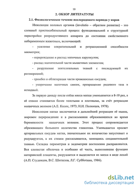 2.1. Физиологическое течение послеродового периода у коров 10