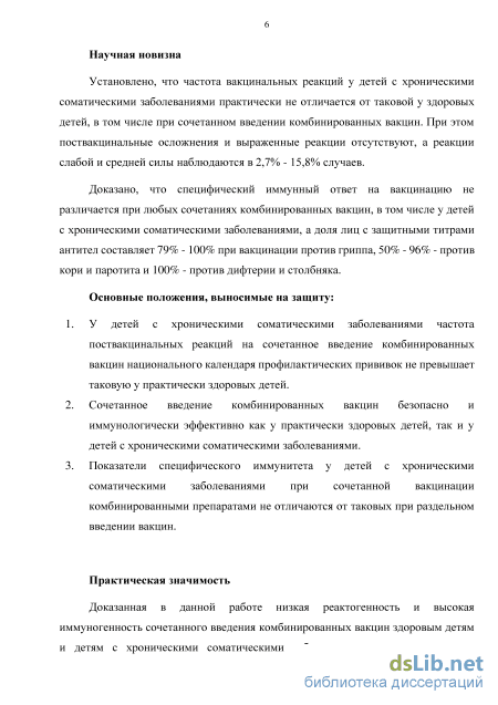В задачи исследования входило: сравнить клинические проявления реакций и иммунный ответ при раздельном и одновременном введении комбинированных вакцин против гриппа и дифтерии, столбняка, коклюша, краснухи, паротита, кори здоровым детям; сопоставить клинические проявления реакций при раздельном и одновременном введении комбинированных вакцин против гриппа, дифтерии, столбняка, коклюша, кори, паротита детям с хроническими соматическими заболеваниями; оценить показатели специфического гуморального иммунитета на введение комбинированных вакцинных препаратов против гриппа и дифтерии, столбняка, коклюша, кори, паротита при их раздельном и одновременном введении детям с хроническими соматическими заболеваниями.