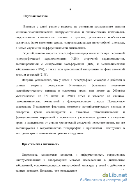 гипертрофией миокарда у детей с дебютом в раннем возрасте и тем самым повысить эффективность лечения этих больных с учётом факторов, определяющих ремоделирование сердца.