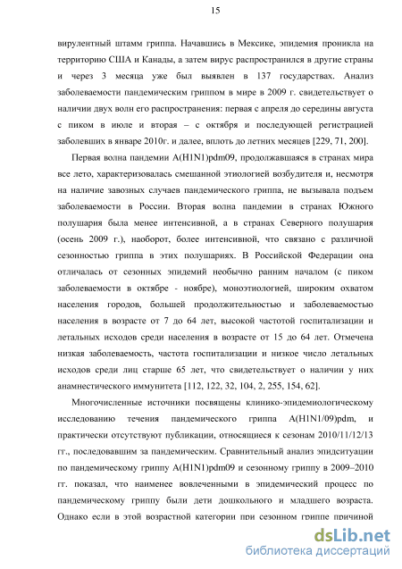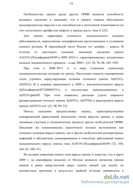 При этом в 2008–2013 гг. в мире сложилась уникальная эпидемиологическая ситуация по гриппу. Населению планеты одновременно стали угрожать циркулирующие штаммы сезонного гриппа A(H1N1), A(H3N2), В и впервые выявленного в 2009 г. высокопатогенного вируса A(Калифорния/07/2009(H1N1), в последствии переименованного в A(H1N1)pdm09. При этом появилась реальная угроза широкого распространения птичьего гриппа A(H5N1), A(H7N9) и реассортанта вируса гриппа A(H3N2) swl. [22, 98, 89, 23]. Началу пандемии предшествовал период, характеризующийся одновременной циркуляцией нескольких типов вирусов гриппа, а также значимым участием в эпидемическом процессе других возбудителей ОРВИ. Пандемия же ознаменовалась практически полным вытеснением как сезонных штаммов вируса гриппа, так и других возбудителей респираторных инфекций и абсолютным доминированием в этиологии заболеваний нового пандемического вируса гриппа типа А/(Н1N1)/Калифорния/04/09 [32, 104, 164, 62, 100, 41].