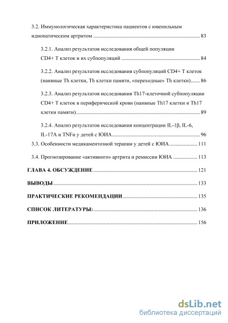 3.2. Иммунологическая характеристика пациентов с ювенильным идиопатическим артритом 83