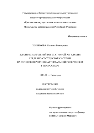 Похожие диссертации на Влияние нарушений вегетативной регуляции сердечно-сосудистой системы на течение первичной артериальной гипертензии у подростков