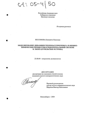 Объем и структура работы. Работа состоит из 5 глав, Введения и Заключения. Материал изложен на 200 страницах, проиллюстрирован 31 рисунком и 13 таблицами. В первой главе обобщена и систематизирована имеющаяся в литературе информация по составу вулканических газов, газово-жидких включений и закалочных стекол, обсуждены применяемые в мировой практике методы моделирования тепломассопереноса и физико-химических процессов в вулкано-плутонических системах. Во второй главе дано описание объекта исследования, особое внимание уделено гидрогеохимиии термальных полей, изучение которой проводится впервые на оригинальных авторских материалах. Третья глава — обоснование выбранного метода для моделирования тепломассопереноса и определение граничных условий задачи. В четвертой главе представлены результаты моделирования тепломассопереноса в области над магматической камерой. Пятая глава посвящена описанию физико-химической модели.