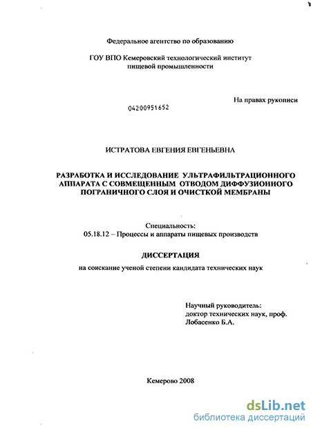Научная новизна. Разработана математическая модель формирования диффузионного слоя в процессе ультрафильтрации. Модель описывает процессы формирования диффузионного слоя на мембране и изменение производительности мембраны по фильтрату с учетом времени.