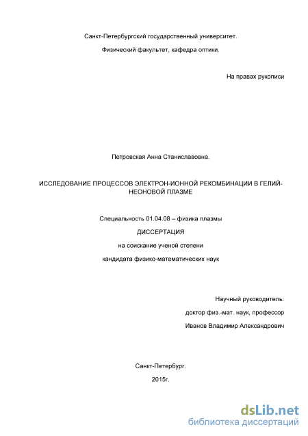 Одними из первых работ по исследованию рекомбинации иона Ne+2 с электронами в распадающейся неоновой плазме (1.2.9) являюся работы [51, 52]. В работе [52] было проведено исследование эмиссионного спектра в неоновой плазме, а также исследованы плотности ионов в распадающейся плазме. Измерения зависимостей от времени интенсивностей спектральных линий в работе [51] показали, что спектральные линии могут быть разделены на две группы. Первая группа отвечает образованию возбужденных состояний атомов неона посредством процесса (1.2.9) при этом атомы неона образуются преимущественно в состояниях с электронной конфигураций Ne(2p53p) и Neh.p54p). Второй группе отвечают процессы рекомбинации атомарного иона неона: Ne+ +е - Ne - Ne + hv Ne+ +e + e Ne +e Ne + e + hv, как было упомянуто выше, эти процессы в наших условиях не проявились.